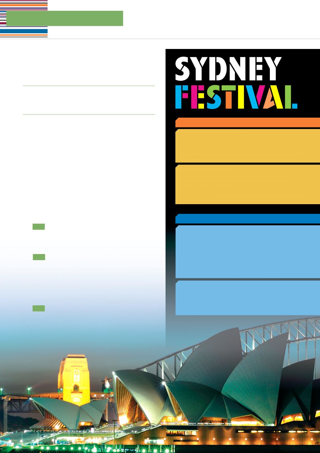Look quickly at the festival events listing and answer